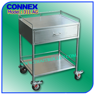 รถเข็นเอนกประสงค์ ขนาด 45 x 55 x 90 C.M. ชนิดทำด้วยสเตนเลสเกรด 304 แบบ 2 ชั้น ชั้นบนมีลิ้นชักพร้อมแนวกันตก ชั้นล่างโปร่งมีแนวกันตก ขนาดล้อ 4 นิ้ว (อิสระ 4 ล้อติดเบรค 2 ล้อ) แข็งแรง สวยงาม ทน