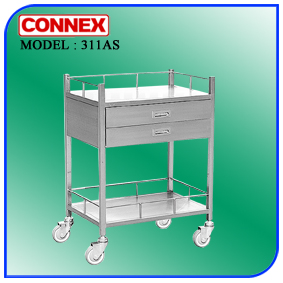 รถเข็นเอนกประสงค์ ขนาด 45 x 70 x 85 C.M. ชนิดทำด้วยสเตนเลสเกรด 304 แบบ 2 ชั้น ลิ้นชัก 2 ชั้น พร้อมแนวกันตก ชั้นล่างโปร่งมีแนวกันตก ขนาดล้อ 4 นิ้ว (อิสระ 4 ล้อติดเบรค 2 ล้อ) แข็งแรง สวยงาม ทน