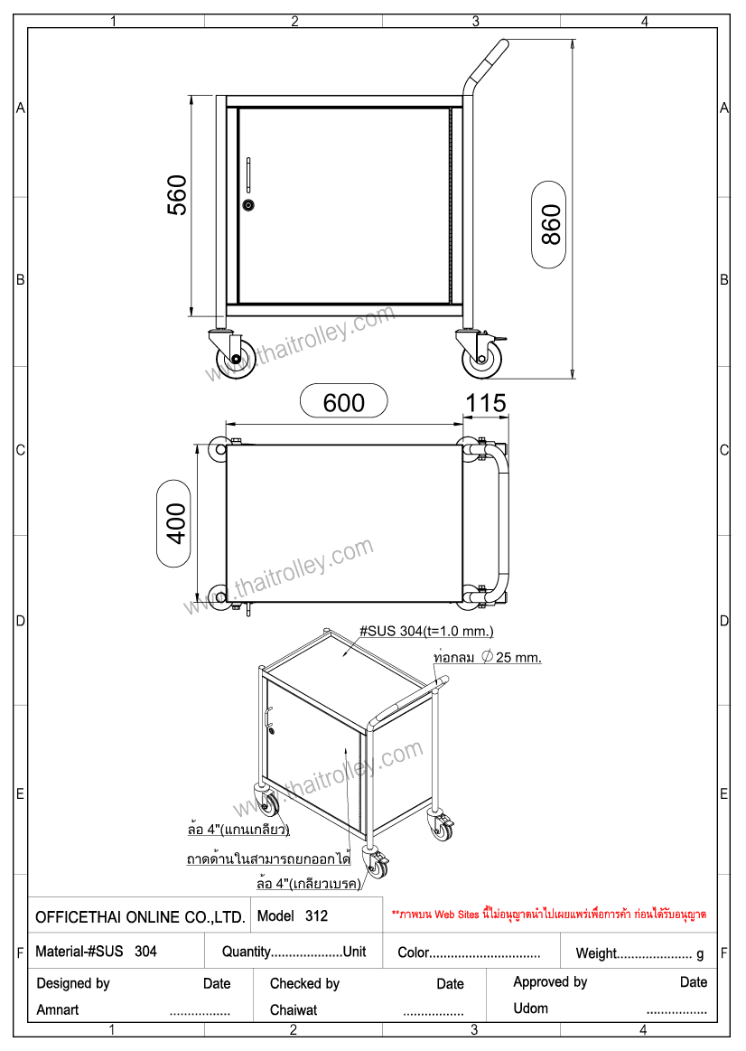 รถเข็นเอนกประสงค์ชนิดทำด้วยแสตนเลส
