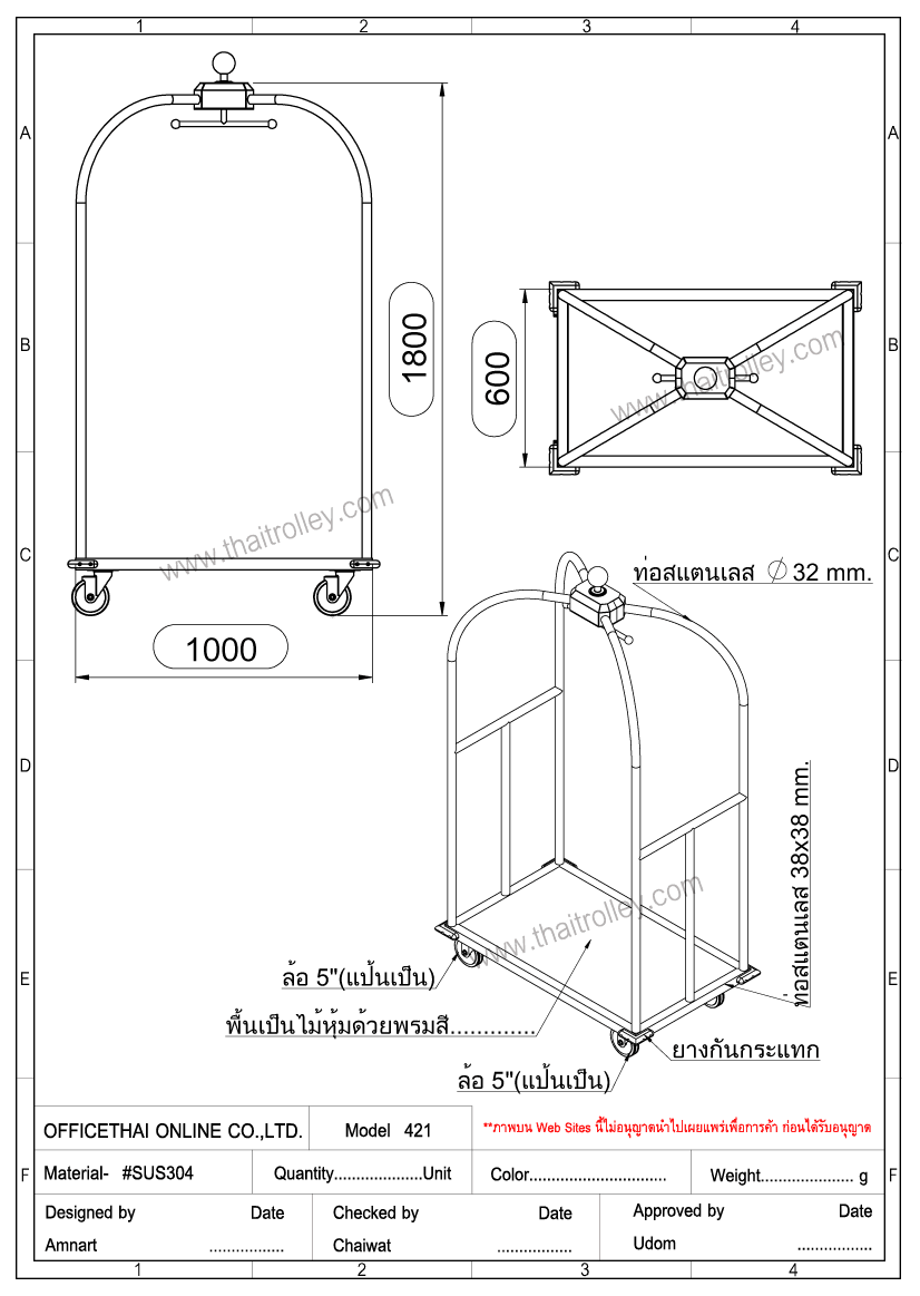 โครงสร้างเป็นแสตนเลสกลม ขนาด 32 M.M.