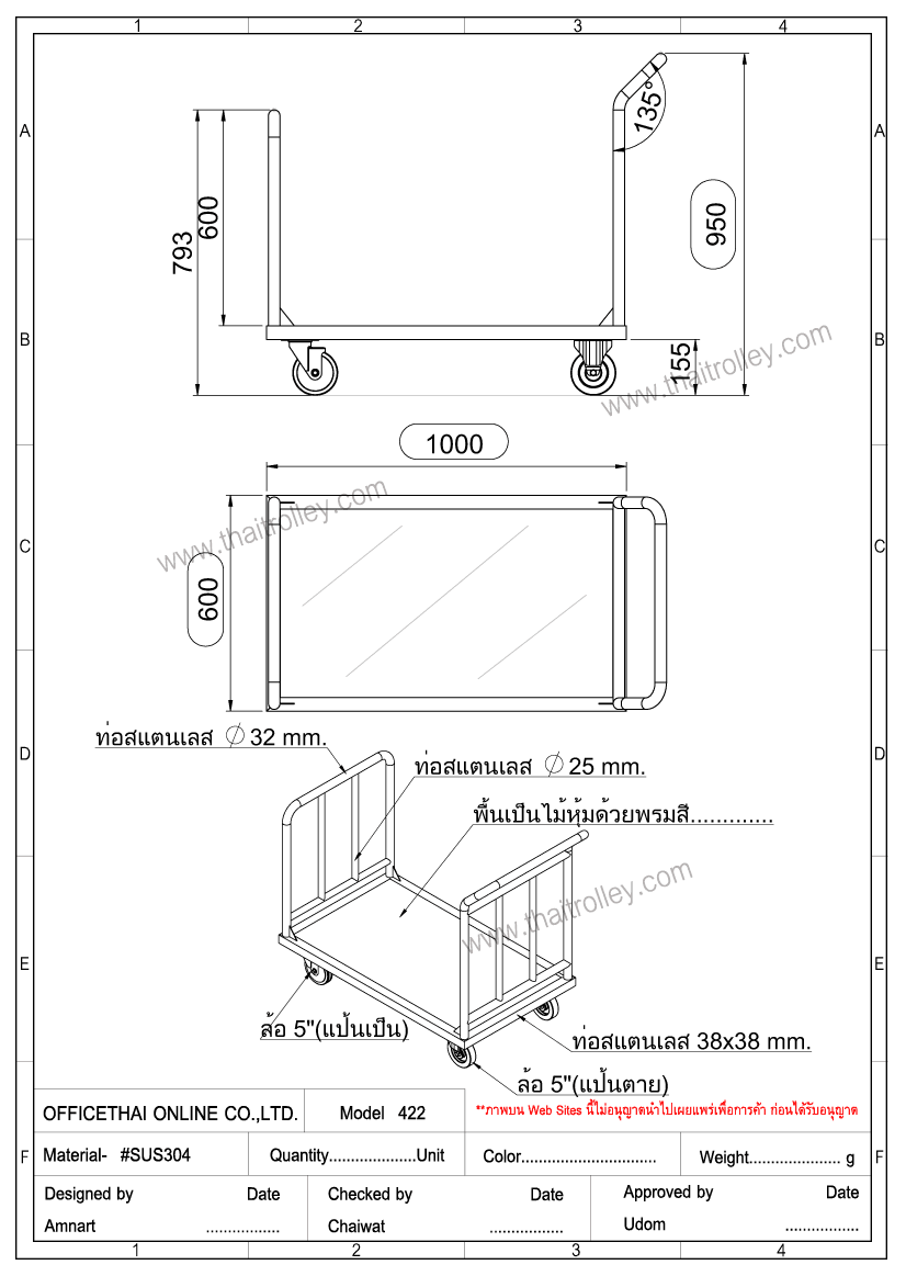 โครงสร้างเป็นแสตนเลสกลม ขนาด 32 M.M.