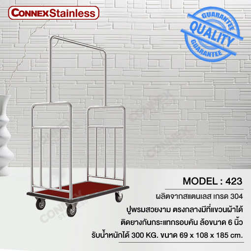 รถเข็นกระเป๋า ชนิดทำด้วยแสตนเลส ขึ้นรูปสวยงามอย่างมีสัดส่วน