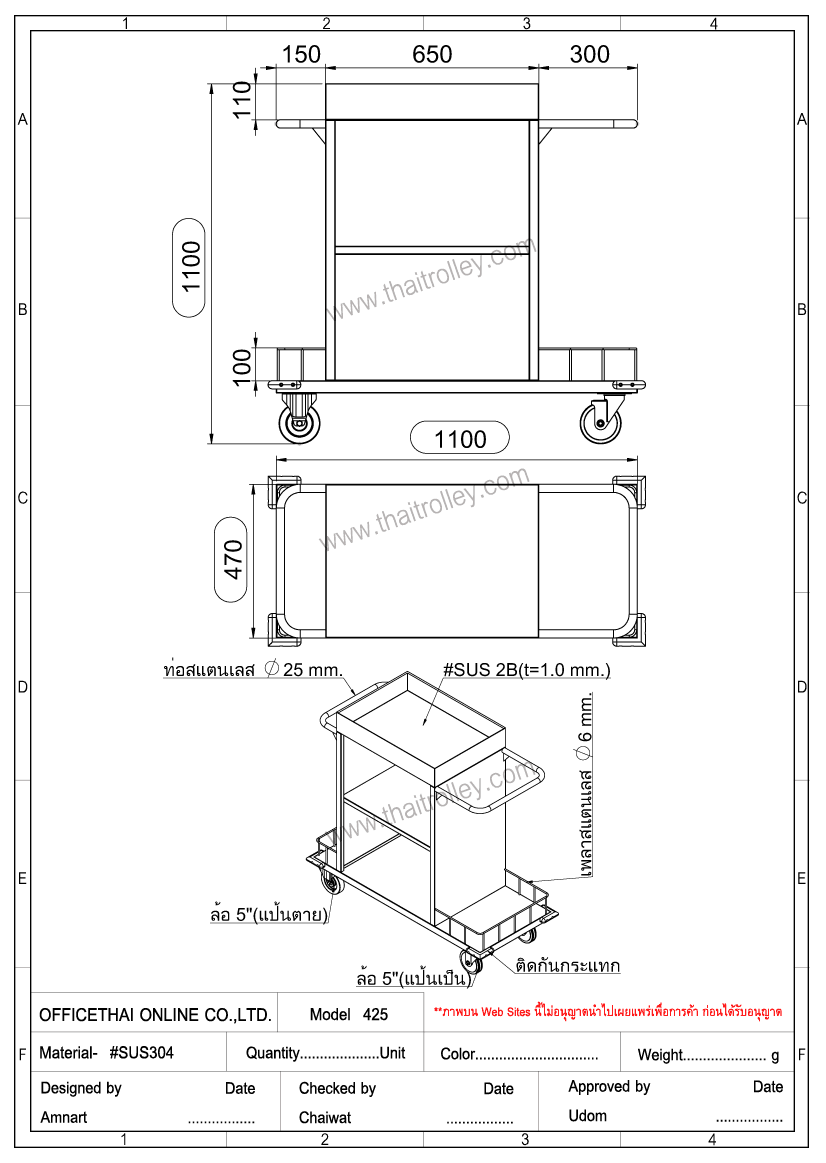 โครงสร้างเป็นแสตนเลสเกรด 304 ทั้งหมด ขนาด