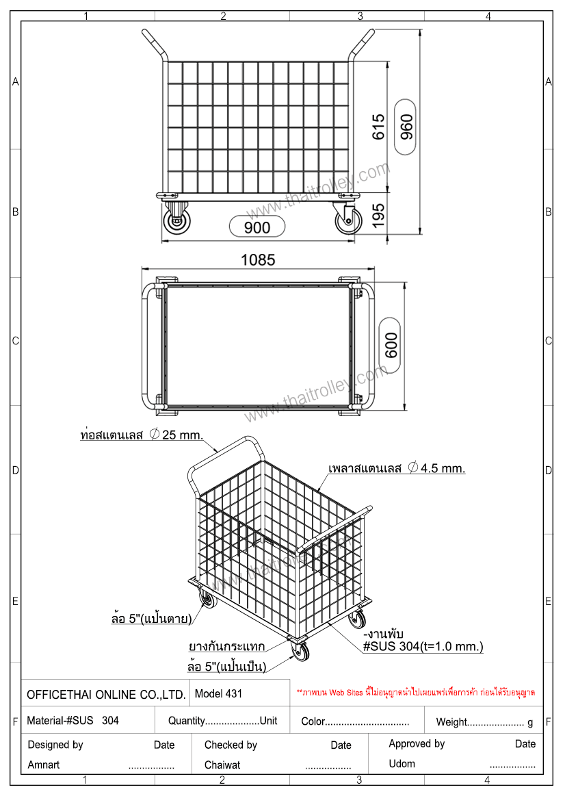 ติดยางกันกระแทกทั้ง 4 มุม พื้นเป็นแสตนเลสด้านข้างเป็นตะแกรงทั้ง 4 ด้าน