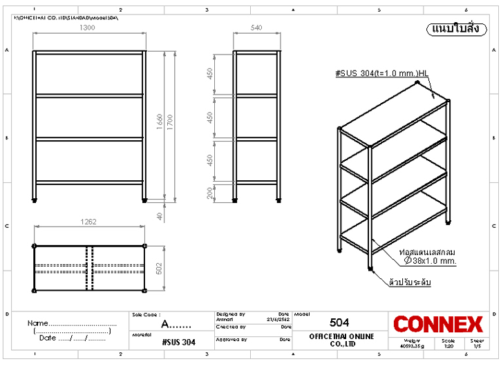 ขนาด 54 x 130 x 170 C.M. ( ก x ย x ส )