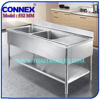 MODEL 532 MM ซิงค์ ล้างจานและเตรียมอาหาร แบบ 2 หลุม ขนาด 70 X 160 X 85 C.M. ขนาดหลุมล้างจาน 50 x 50 x 30 C.M. ชั้นล่างมีตระแกรงวางของ ตลอดแนว กันตก 15 C.M. พร้อมแผ่นสแตนเลสปิดรอบ 3 ด้าน วัสดุทำด้วยแสตนเลส เกรด 304 ความหนา 1.2 M.M. โครงเสากลม ขนาด 1.5 นิ้ว ประกอบ และเชื่อมอย่างประณีต สวยงาม แข็งแรง ทน หมายเหตุ รับผลิตงานตามสั่ง |